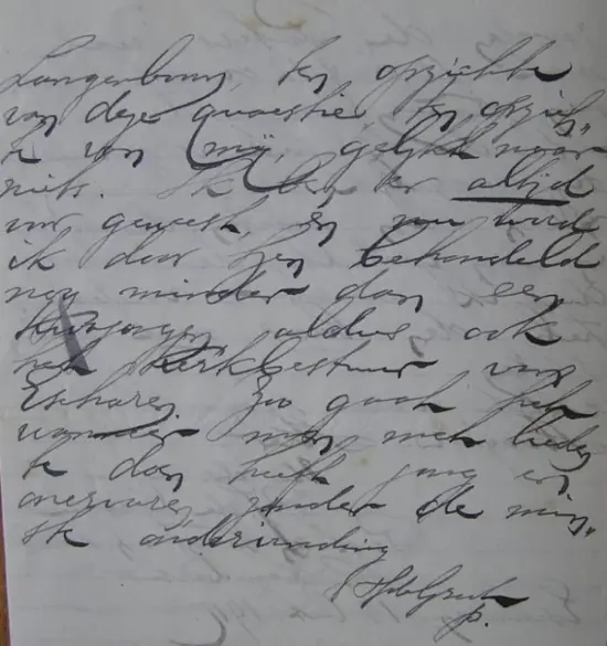 PS Ik mag niet nalaten, om U Hoogeerw, de volgende mede te delen. De handelswijze van de zeer Eerw. Paters van den Langenboom ten opzichte van deze quoestie, ten opzichte van mij, gelijkt naar niets. Ik ben er altijd voor geweest, en nou word ik door hen behandeld nog minder dan een kwajongen, aldus ook het Kerkbestuur van Escharen. Zoo gaat het wanneer men met lieden te doen heeft jong en onervaren, zonder de minste onderving.