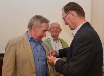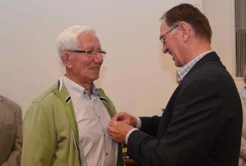 (De onderscheidingen werden uitgereikt door Johan Bardoel, voorzitter van het koor)