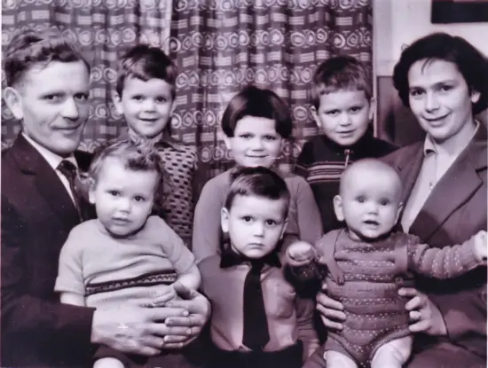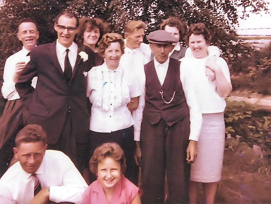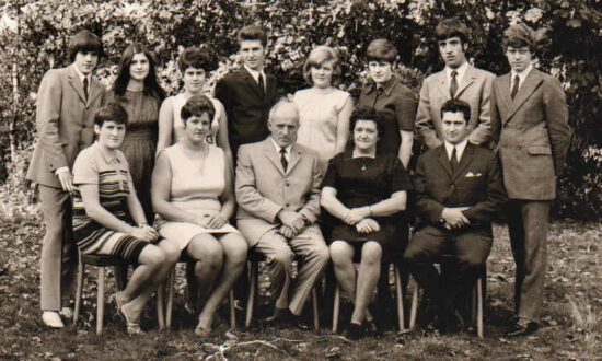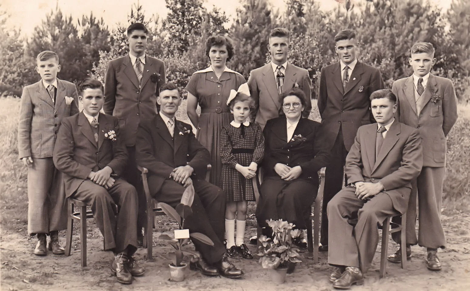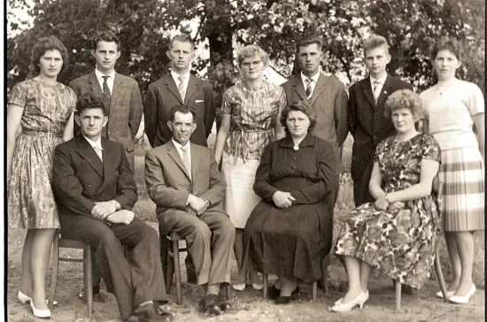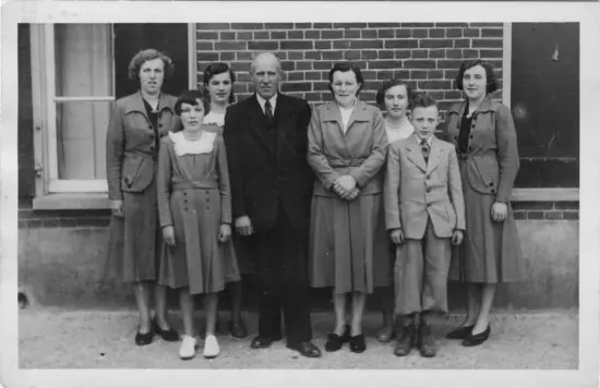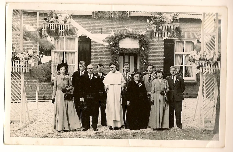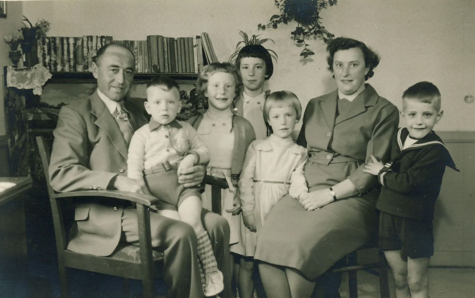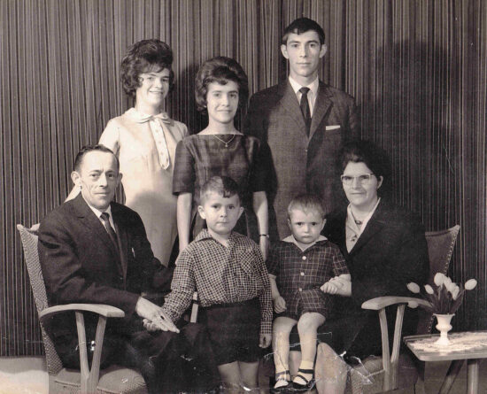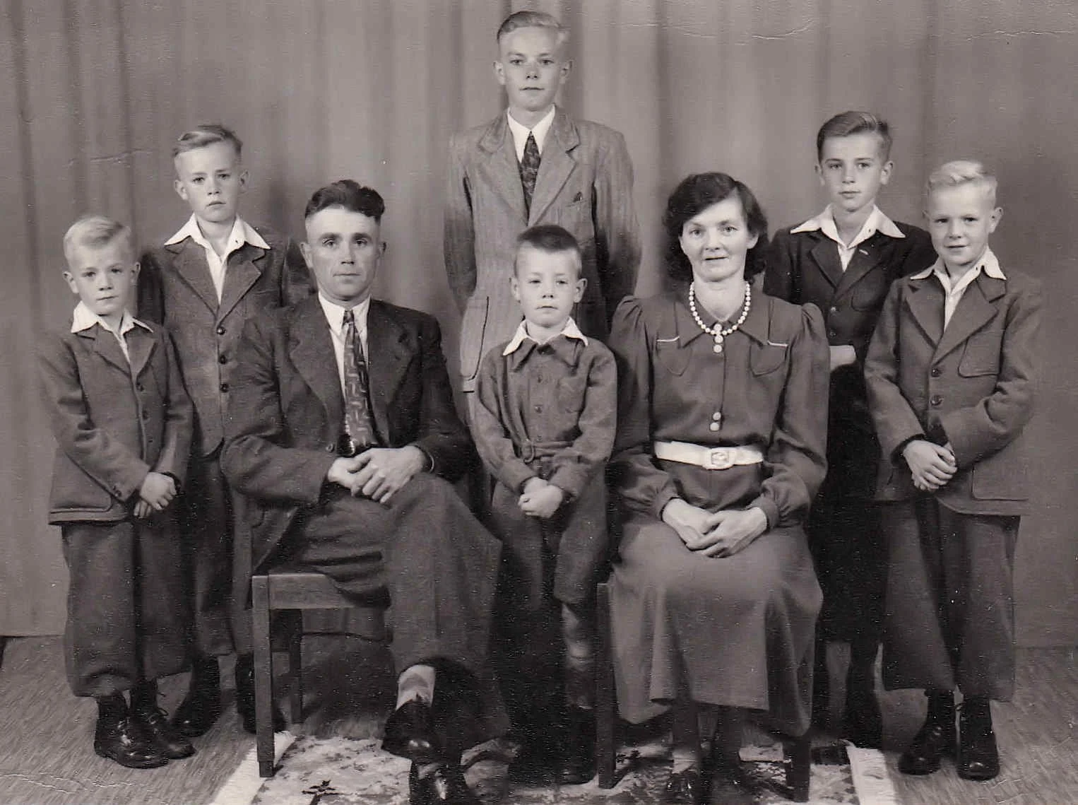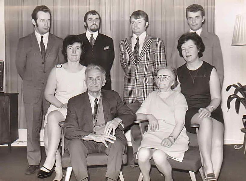 Bovenste rij: Trix – Ad – vader Toon – moeder Riek – Bert – Hennie – Marijke – Gerrie en Tonnie