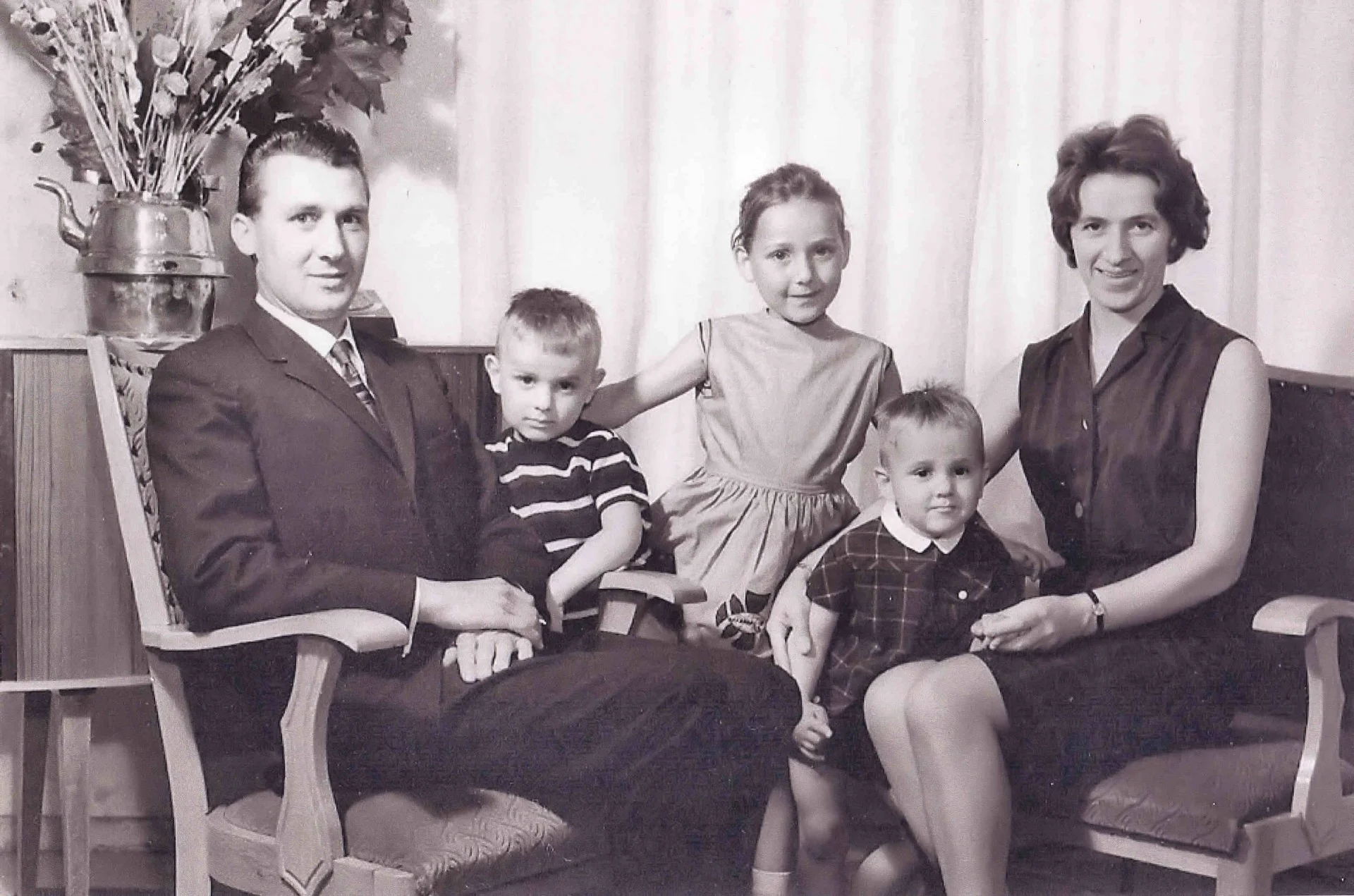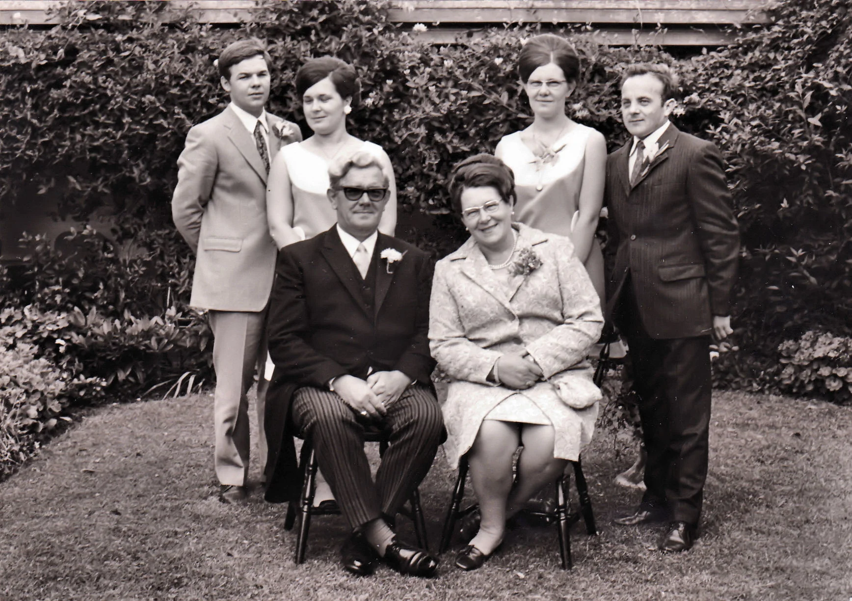 25 jaar getrouwd in 1974: Vader Harrie vd Berg-Jeanne-Christien-Peter-Henk en moeder Netje vd Berg-Martens