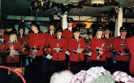1995: Serenade in zaal Bens: Vlnr. Wil van Raaij – Bonnie Christiaans – .. – Rob Buts – Fred van dalen – Leonie Reinen -Oscar van Hout – Jo Verstegen – Reggie vd Ven – Toon Jans en Piet Brans