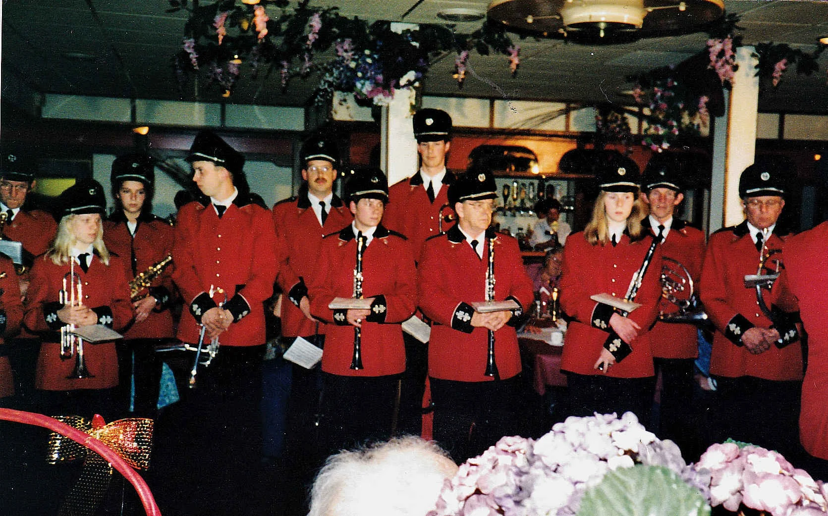 3e rij: Kitty Emons (tambour-maitre) – Jan Derks – Tonny van Dalen – Peter Verstegen – Marieke Lamers – Willy Derks – Tom Verstegen – Henry van Ras – Ermerd-Jan vd Burgt – Peter Derks Peter van Ras – Gerold vd Burgt – Hetty van Dalen – Marga Bongers – Toon Verstraten en Toon Franken (vaandel)