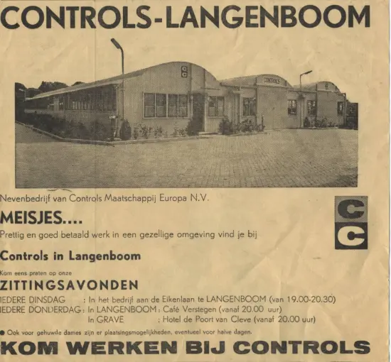 Indien de naam Controls in Langenboom tijdens een gesprek valt, dan gaan bij velen de herinneringen terug naar de jaren ’60 van de vorige eeuw, toen aan de Eikenlaan de nissenhutten van Bosman tijdelijk verhuurd waren aan Controls Company (CC). Dit bedrijf, opgericht in 1955 in Nijmegen, was een dochtermaatschappij van Singer uit Amerika (ja, van de naaimachines).