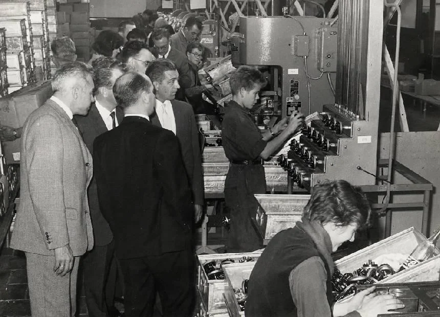 Voorts werd nog het woord gevoerd door pastoor Hoenselaars. Voor hem was het een hele geruststelling te weten, dat zijn parochianen zonder bezwaar in deze vestiging een nieuwe werkkring konden gaan zoeken. Deze woorden van de pastoor maakten het gemakkelijker voor meisjes en vrouwen om ook in deze assemblagefabriek te komen werken. Uiteraard zegende de pastoor het bedrijf plechtig in.