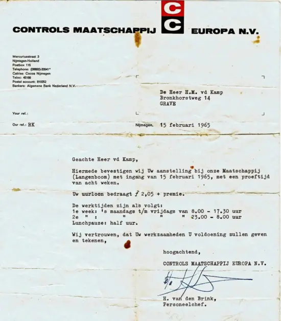 Men kwam daar terecht in een groot bedrijf, waar de cultuur toch wat anders was. De Nijmegenaren waren veel mondiger en dat kostte toch wel enige aanpassingen. In Langenboom was alles veel gemoedelijker geweest.
