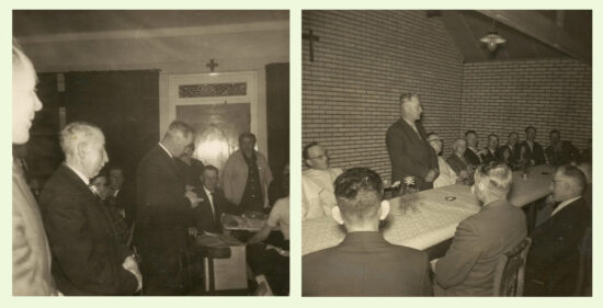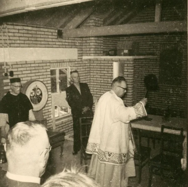 De opening en inzegening konden al plaatsvinden op 20 juli door pastoor Hoenselaars O.P., die in gezelschap was van Kapelaan v.d. Idsert en Pater Houtenbosch. Uiteraard ontbraken de bestuursleden van de CRE, de NCB en de CAV niet op deze heuglijke dag en werd er menig borreltje geschonken.