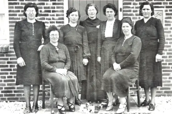 De zusjes Hartjes woonden aan de toenmalige Kloosterstraat: vlnr. Dina – Dora – Marietje (naar Canada) – Grada – Tonia (naar Canada) – Nel en Anna