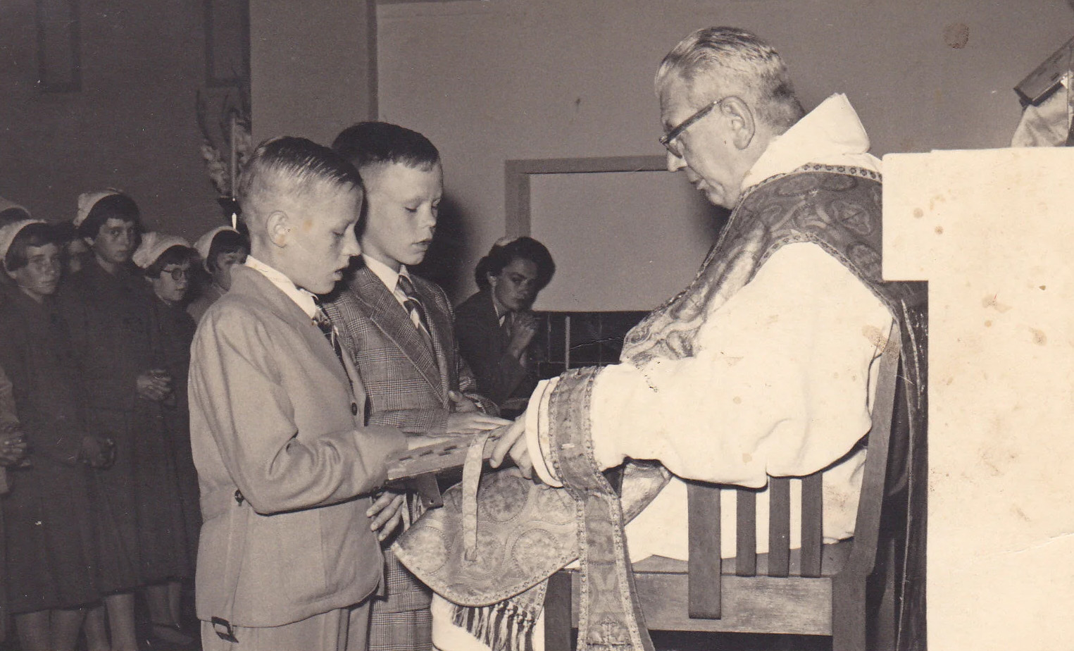 De buurjongetjes Christ Kuppen en Theo v.d. Wiel leggen de plechtige gelofte af.
