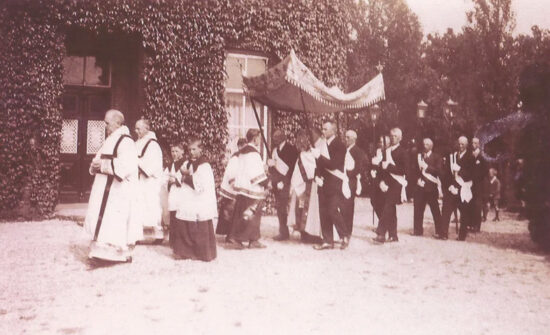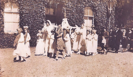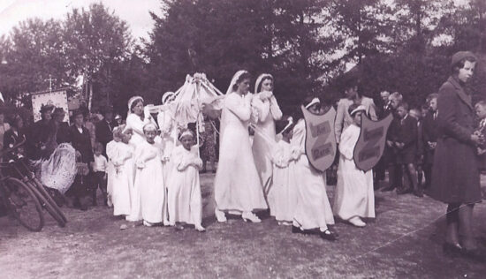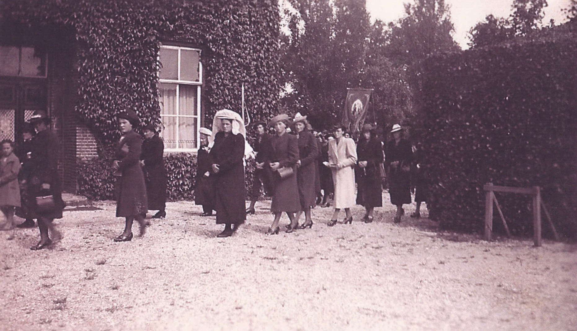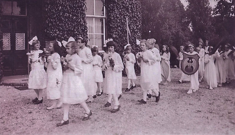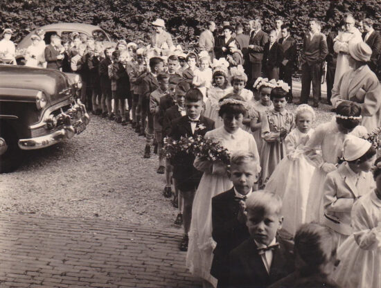 Wie deden de 1e Communie, hier op weg van het klooster naar de kerk.?