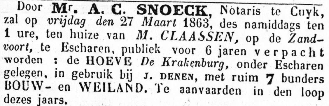 Al in 1806 woonde er een Claassen op deze boerderij, die behoorde tot de Kroondomeinen. Het is dus uniek, dat er nog steeds een Claassen op deze boerderij werkzaam is. Voor 1863 was dit J. Claassen. In dat jaar werd de tap overgedragen aan zijn zoon Marten Claassen. Toen hij stierf namen zijn kinderen het enige tijd gezamenlijk over. Een van hen, Albertus werd in 1894 alleen de kastelein. Vaak kwam men er voor speciale gelegenheden bij elkaar, zoals o.a. de schutters van de Burgerwacht nadat ze schietoefeningen hadden gehouden op ’t Schuttersveldje, dat in 1921 weer in gebruik genomen was. Toch vond moeder Claassen het rond 1923 teveel worden: een boerderij, een herberg en ook nog een steeds groter wordend gezin. De herbergactiviteiten werden gestaakt.