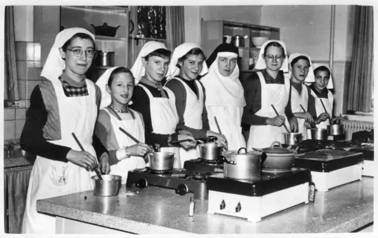 In het kooklokaal in 1952: