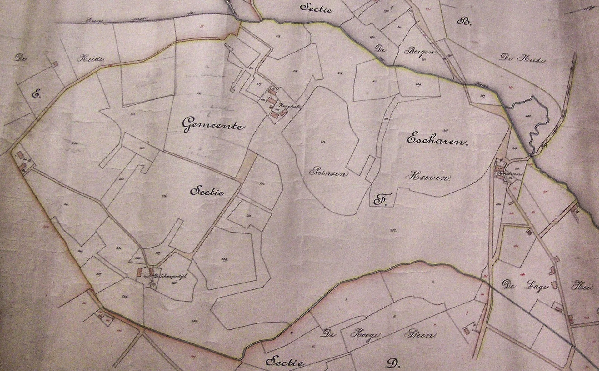 Kaartje uit 1892 van de Prinsenhoeven oftewel de Kroondomeinen