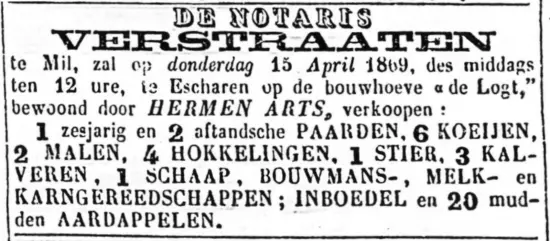 Peter Willems heeft deze boerderij zeer lang gepacht. Blijkbaar zijn de twee delen van de Logt weer samengevoegd, want er wordt in 1821 alleen Hermanus Arts als bewoner genoemd. De bouwhof is groot 19 morgen. Pachtprijs 155 guldens. Voor een lange periode wordt Hermanus opgevolgd door zoon Hermen nl. van 1833 tot 1869. Hij was getrouwd met Helena Jans. Zijn twee zoons Johannes en Jacobus Arts zijn de opvolgers.