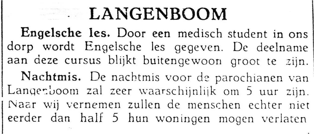 Vanwege de grote gebeurtenissen werkte ’s maandags in Langenboom vrijwel niemand meer. Men durfde zelfs weer rood-wit-blauwe vlaggen te voorschijn te halen en ook het eerste Oranje verscheen weer. Dolblij was men. Iedereen stond buiten en vele Langenbomers gingen met de fiets (met massieve banden) naar de Amerikanen kijken bij Den Tol in Velp. Zittend op een jeep deelden de para’s Player-sigaretten uit. Die smaakten wel na jaren eigen teelt gerookt te hebben.