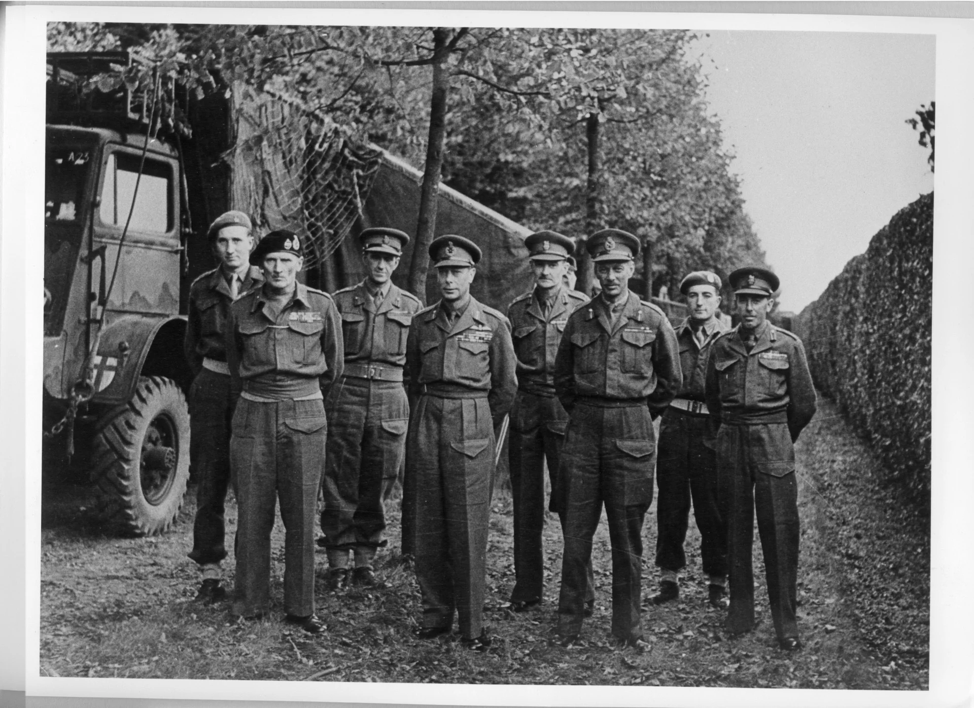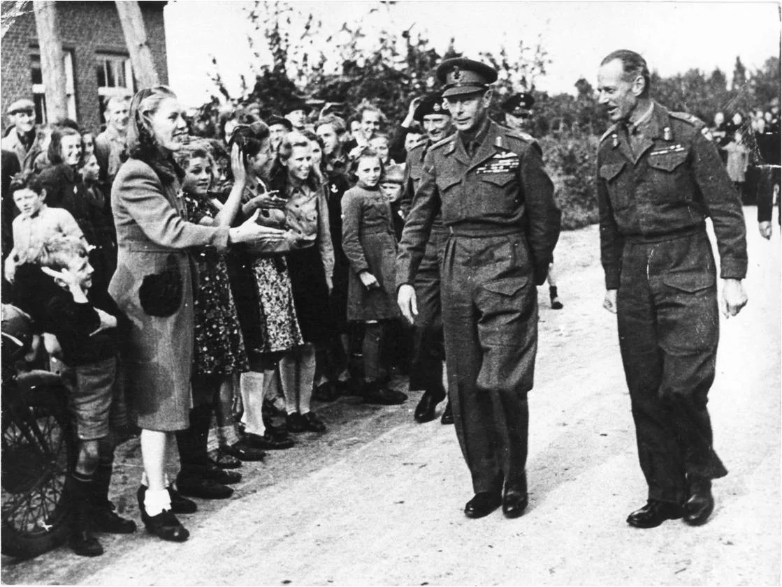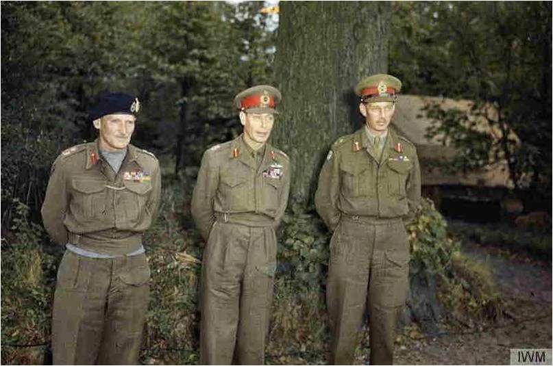 George VI, in gezelschap van Veldmaarschalk Montgomery, een bezoek aan het hoofdkwartier bracht.