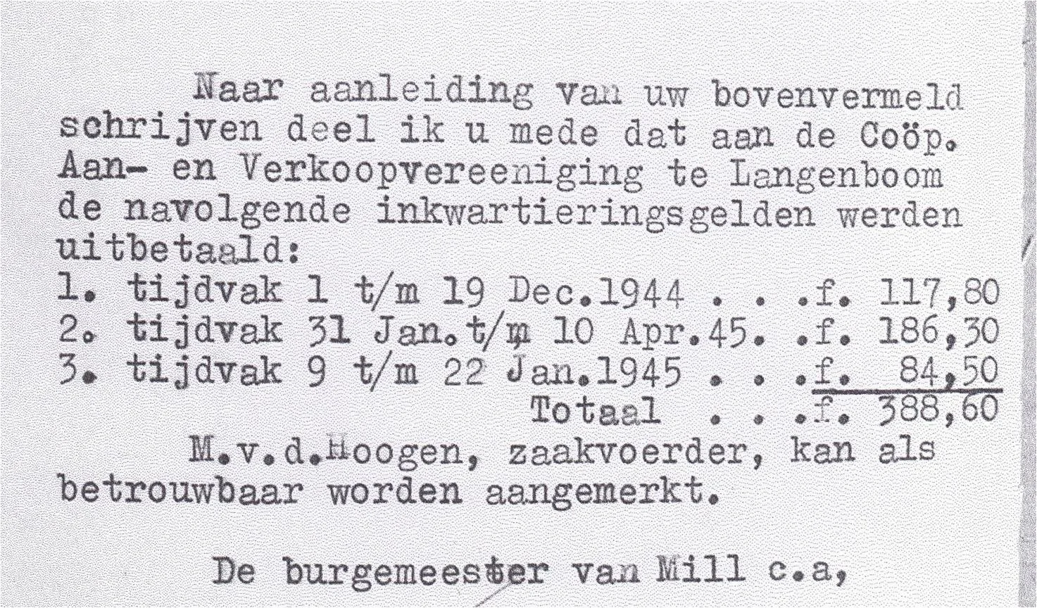 Nu Langenboom bevrijd was, moest er veel weer op poten worden gezet. Tot leiders van de Ordedienst alhier werd benoemd Herman van Kuppevelt, later huisarts in Volkel en Jo Gerrits.