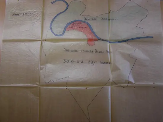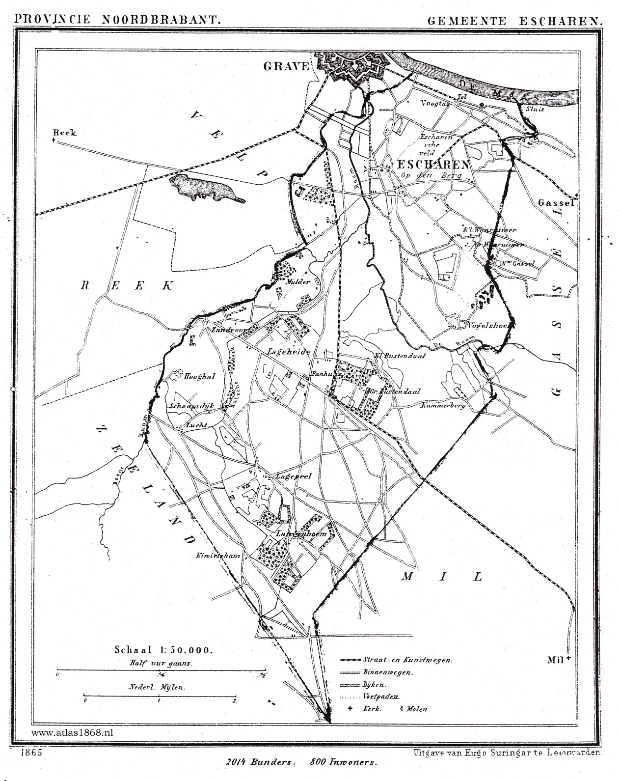 Op de kaart van 20 juni 1933 hebben wij het grondgebied aangeduid, omvattende de gemeenten Grave, Velp, Reek, Escharen en Gassel, welk gebied naar ons oordeel tot één gemeente zou kunnen worden gevormd, mogelijk met uitzondering van een gedeelte van de gemeente Escharen, hetgeen misschien beter ware te voegen bij de gemeente Zeeland of Mill c.a.