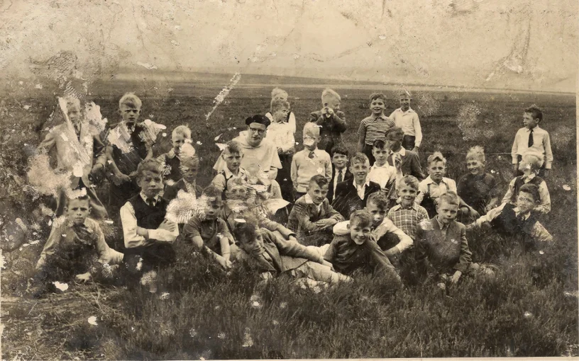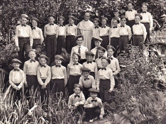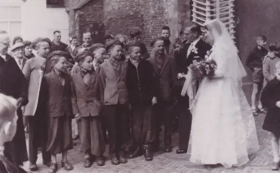 – Het jongetje rechts schuin achter de pater dat naar rechts kijkt en de handen bij het gezicht heeft is Wim vd Burgt