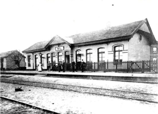 Het Duits Lijntje had een lengte van 100 kilometer en de aanleg van spoorlijn, stationsgebouwen, toegangswegen en andere faciliteiten had in totaal ƒ 4.500.000,00 gekost. Naast het vervoer van goederen en vele passagiers maakten ook koninklijke reizigers gebruik van dit traject De Kroonprins van Duitsland was één van de vooraanstaande passanten, als hij zijn tante Queen Victoria in Londen met een bezoek wilde vereren. Ook de Prince of Wales genoot van de prachtige treinreis, wanneer hij op visite ging naar de Tsaar in Petrograd. De burgemeester van Mill werd steeds in kennis gesteld, als een hooggeplaatst persoon het station in zijn dorp aandeed. De heer Kerstens uit Mill was de president-commissaris van de NBDS en de Duitse Rijkskanselier Otto von Bismarck zal in 1874 raar opgekeken hebben, dat de trein in Mill stopte om slechts één man uit te laten stappen, die verder zijn weg lopend door de velden vervolgde. Mill voer er dan ook wel bij, want er werd grond verkocht aan de spoorwegmaatschappij en Mill nam ook deel in het kapitaal van de onderneming. Er werd een goed berijdbare weg aangelegd (Stationsstraat) richting het station en door de aanleg van de spoorweg werd het centrum verplaatst van het oude kerkhof (nu Acaciahof) naar het huidige centrum. Ook particulieren namen initiatieven om de vruchten te plukken van het komen en gaan van de vele reizigers. Hendrik van der Linden, meester timmerman en aannemer bouwde in 1874 tegenover het station een bedrijf met café en hij verrichte ook werkzaamheden voor de NBDS. Dit pand Spoorstraat 30 3n 30a, werd later de smederij en werkplaats van de familie Verbruggen en is nu in gebruik als woonhuis. Ook Jan Giesen bouwde in 1880 bij het station een koffiehuis met logement en een koetshuis. Van hieruit vertrok men met koetsen en huifkarren naar de omliggende dorpen van Mill. Dit pand met een rijke historie is onlangs gesloopt en maakt plaats voor appartementen. Rond 1900 reden er wel zo’n 40 treinen per dag, waaronder ook bedevaartgangers naar Kevelaer, waarvoor een retourtje ƒ 0,91 kostte.