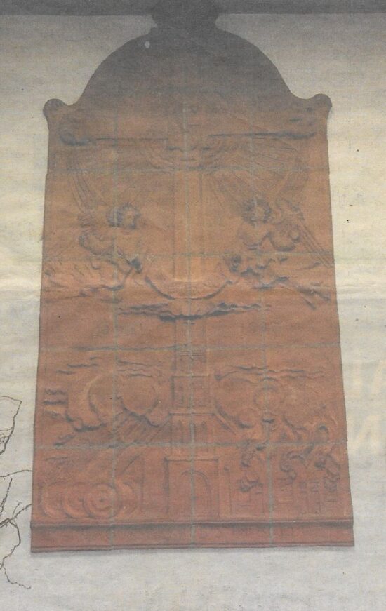 Plaquette in de Sint Willibrorduskerk Mill. Ontworpen door beeldhouwer Jo Uiterwaal.