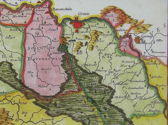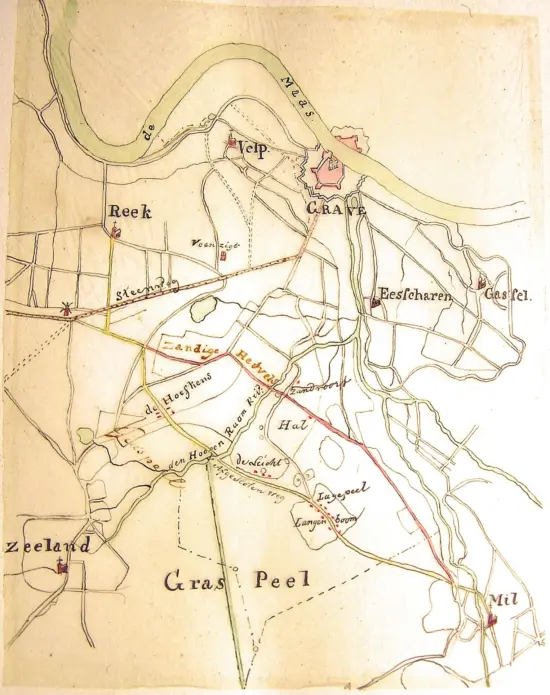 Het Noordelijk Peelgebied rond 1650: tussen Mill en Zeeland stonden enkele boerderijen, het begin van Langenboom.