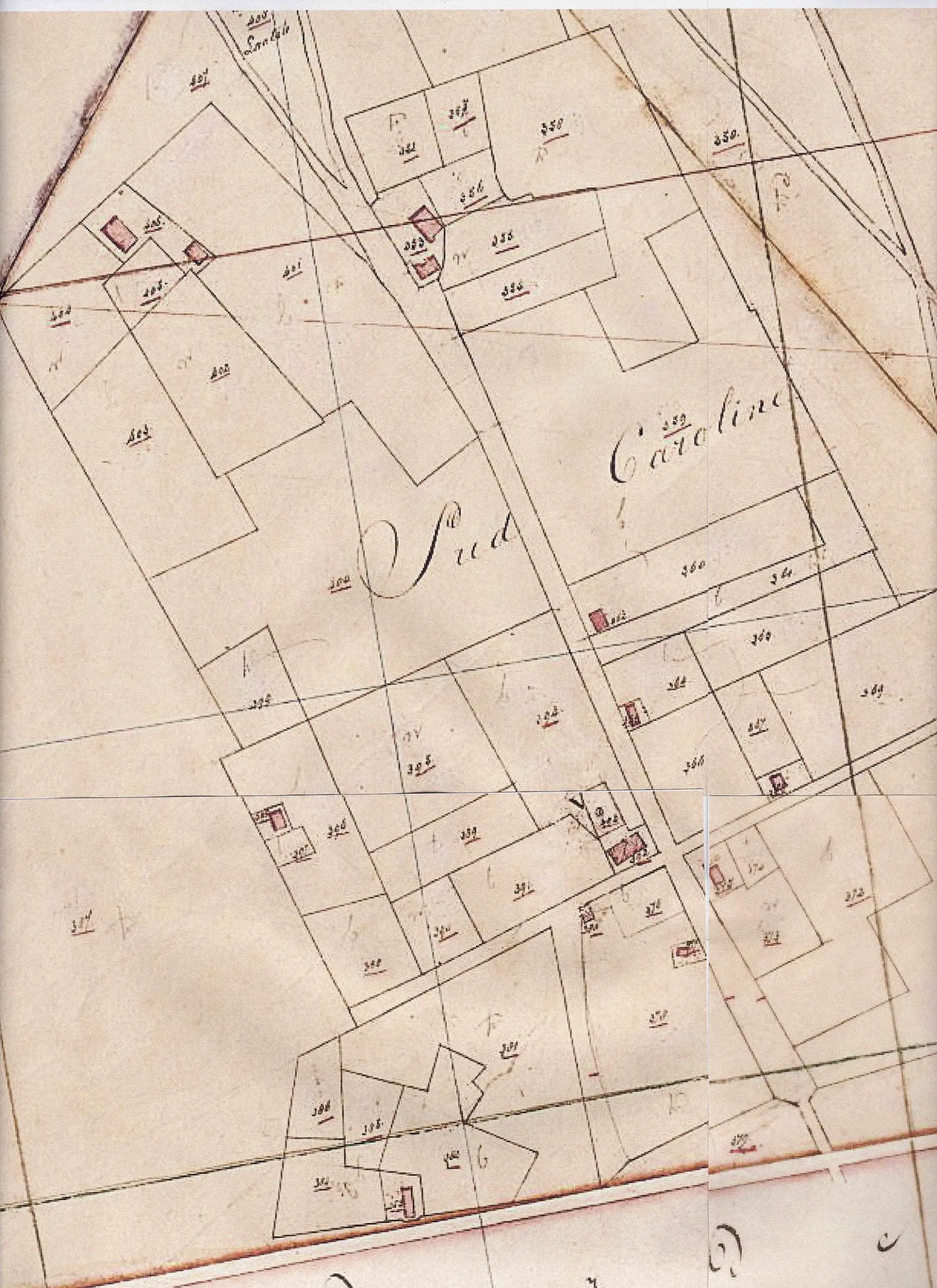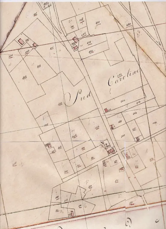 Zuid Carolina in 1834: onder de Zeelandsedijk – in het midden van boven naar beneden de Zuid Carolinaweg
