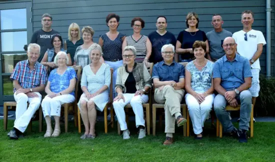 Onderste rij zittend: Rian v.d. Heijden – Emiel v.d. Hoogen – Bas van Kuppeveld – Jeroen Peters – Monique Selten – Monique Meulepas – Claudia v.d. Ven – Marty van Gaal – René de Klijn – Marlies van Limbeek – Nancy de Klein