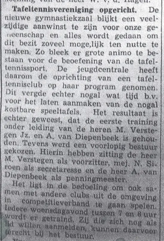 Oprichters waren de heren Jos van der Linden en Wiel Jans. Door de successen van voetbalclub SES liepen de leden echter weg bij de tafeltennisclub (L.T.T.C. genaamd), zodat een roemloos einde het gevolg was.