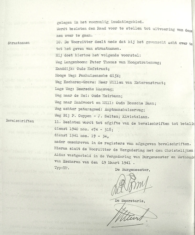 In de notulen van de Raadsvergadering van de Gemeente Escharen in 1941 wordt de suggestie gedaan om een straat in Langenboom “Pater Thomas Van Hoogstratenweg” te noemen. Maar misschien is dit plan in de vergetelheid veranderd toen snel na die tijd Langenboom onderdeel werd van de gemeente Mill & Sint Hubert en die waren enorm niet op de hoogte van dit voornemen. De bewuste straat heeft tegenwoordig ‘Dominicanenstaat’.