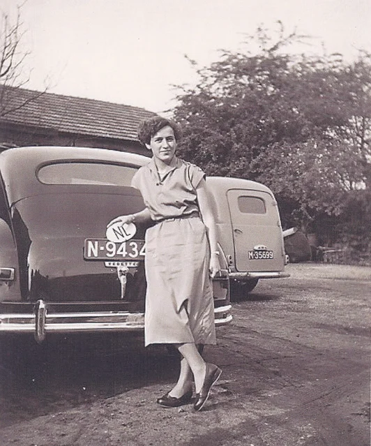 Joke van Schayik-Loeffen bij de auto van haar schoonmoeder