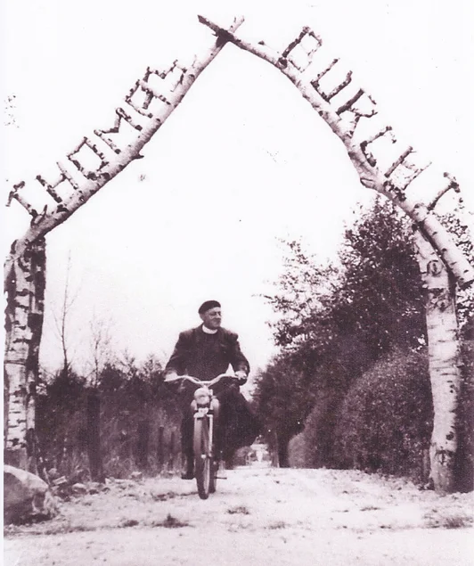Kapelaan Van den Idsert bij de ingang naar de Thomasburcht
