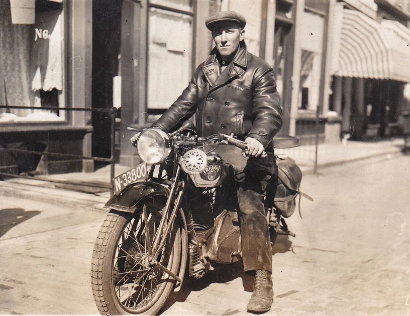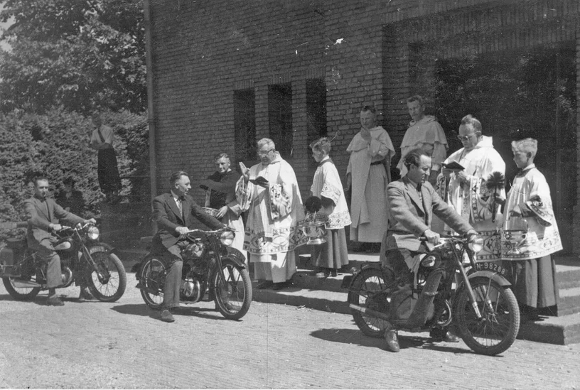 Jo Gerrits op de motor met achterop zijn moeder Mina Gerrits-Jilesen
